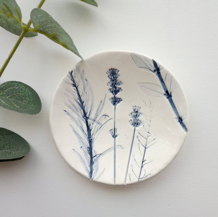 This is one of my trinket dishes I make from pressing real plants into the clay.