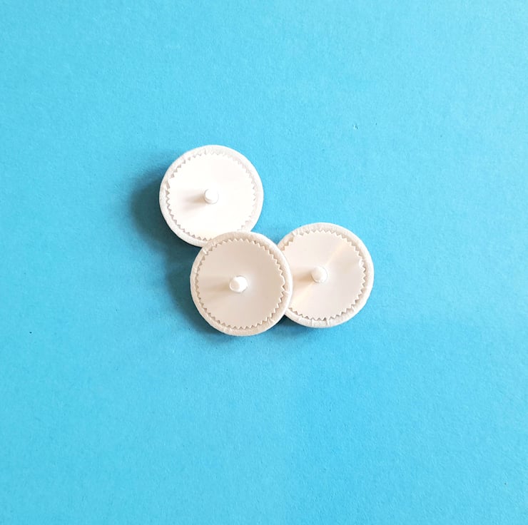 The buttons have plastic shanks and measure: