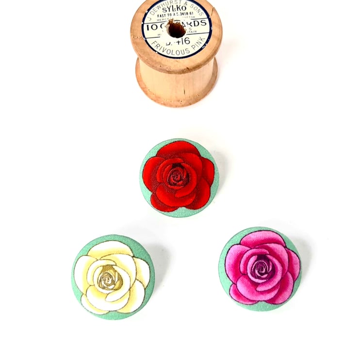 These pretty rose covered buttons can be used in sewing and craft / textile jewellery projects or to decorate fabric pouches, bags, home decor items such as cushions / pillows etc. They would also make cute little closures for needle books, tablet / book pouches and other items.