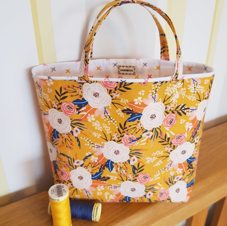 Handsewn by me with cotton fabric it is lined and interlined so will keep its shape. And it can be used to keep something in so has a future use too.