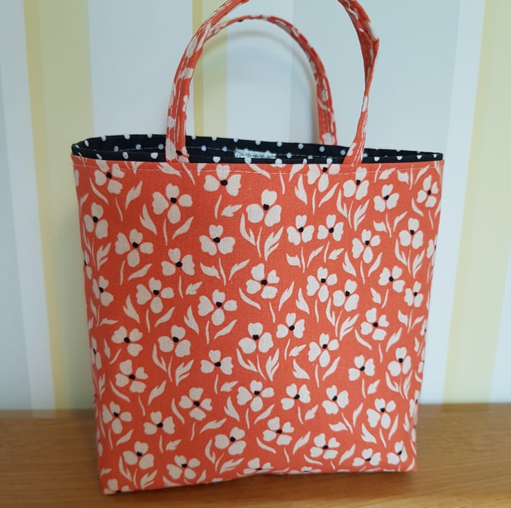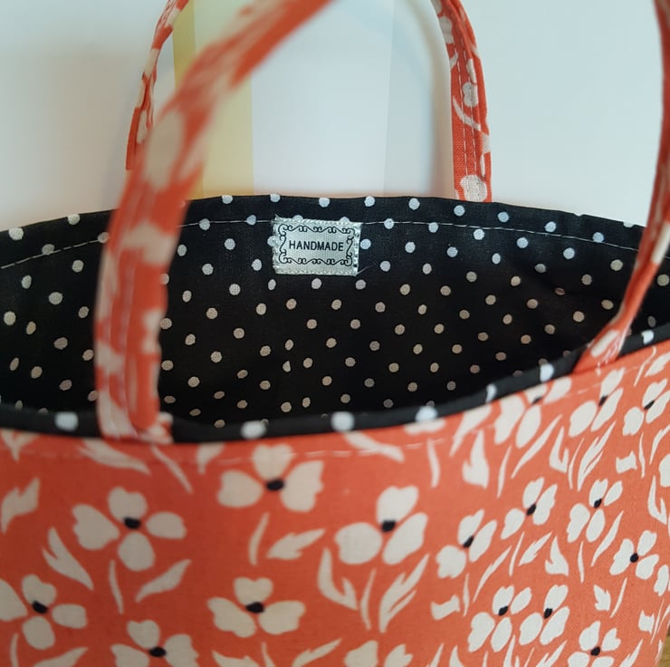 Handsewn by me with cotton fabric it is lined and interlined so will keep its shape. And it can be used to keep something in so has a future use too.