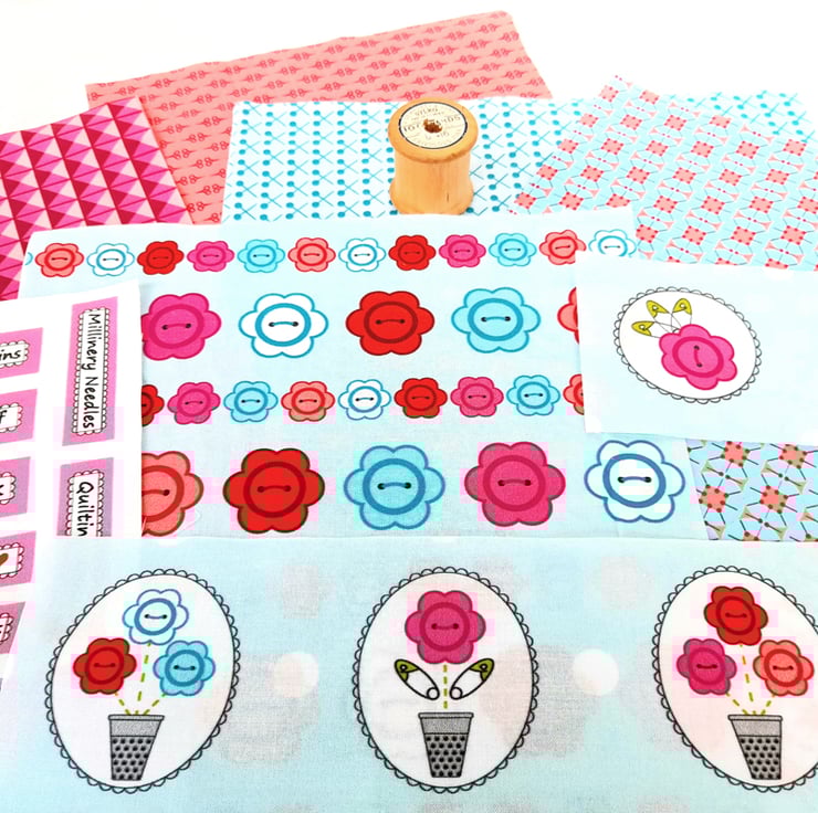 The fabric pieces included in this curated bundle are our own design from our Haberdashery Garden collection, colour co-ordinated and a useful addition to any fabric stash