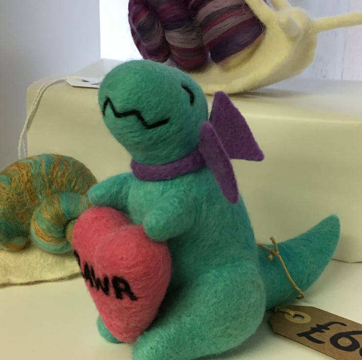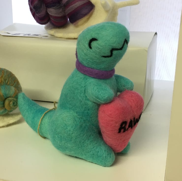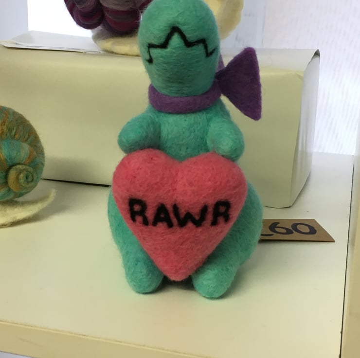 Rawr! means "I Love You" in Dinosaur - needle felted wool Valentine love gift