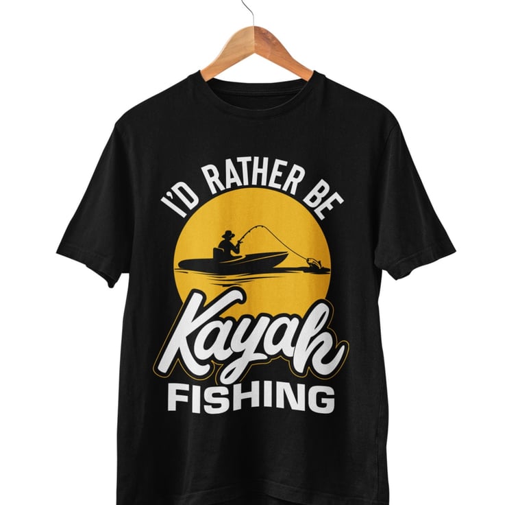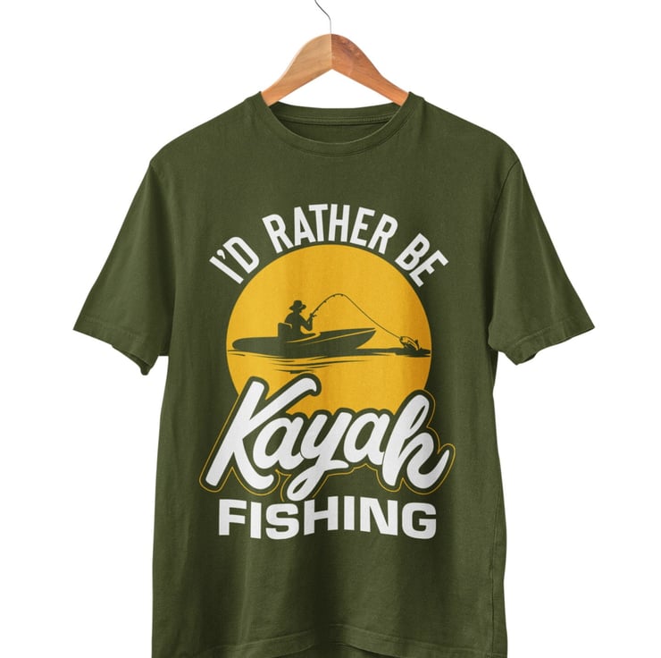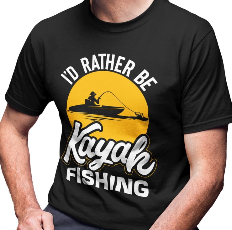 I'd Rather Be Kayak Fishing Funny Fishing T Shirt, brilliant gift idea whether it's for yourself or that fishing enthusiast. Available in four colours, black, midnight navy, military green and silver melange and in nine sizes. Expertly printed using state of the art digital technology so every print is perfect, on a short sleeved, crew neck, soft cotton classic tee.
