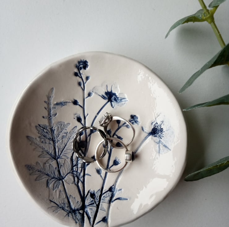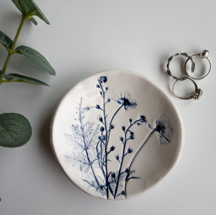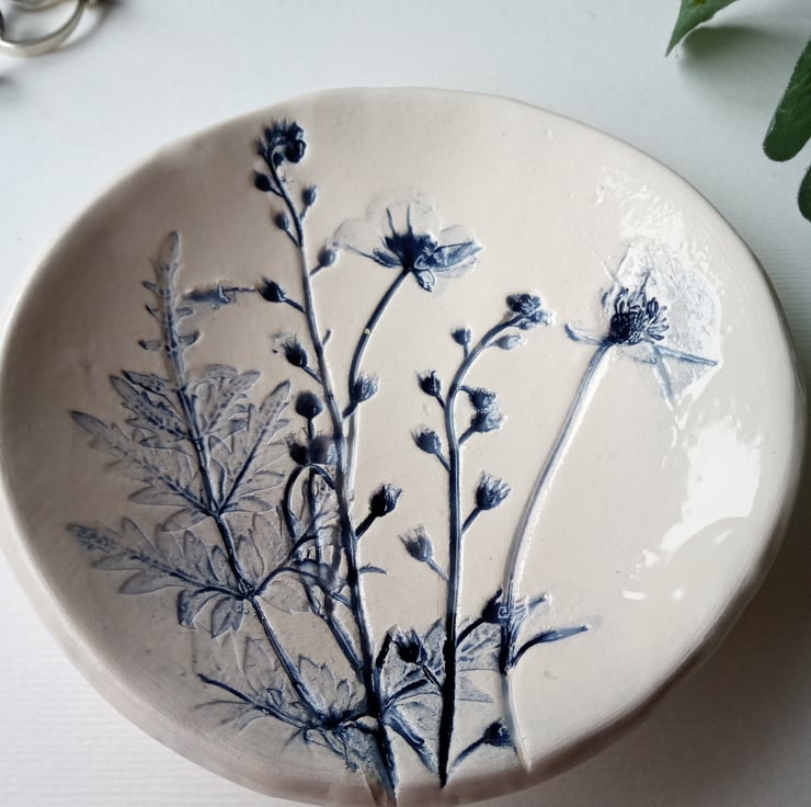 This is one of my trinket dishes I make from pressing real plants into the clay.