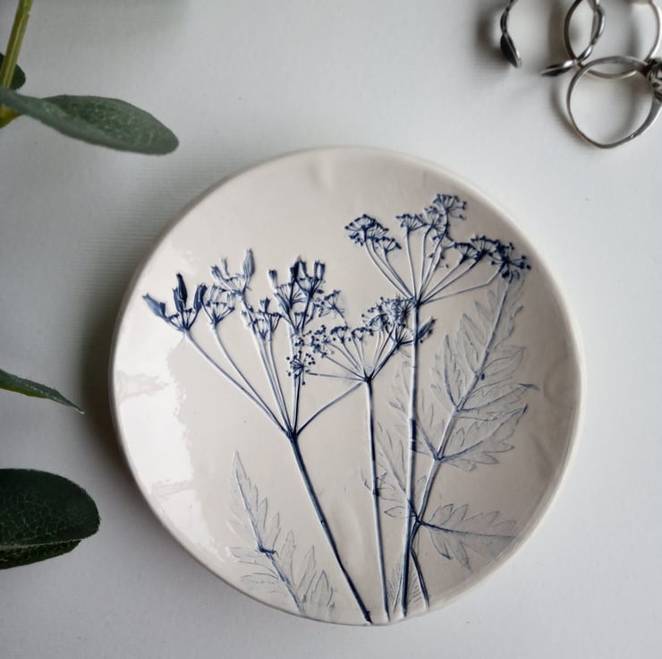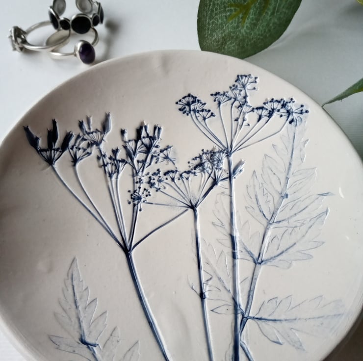 This is one of my trinket dishes I make from pressing real plants into the clay.