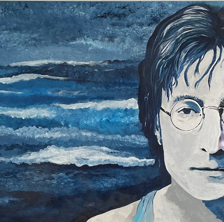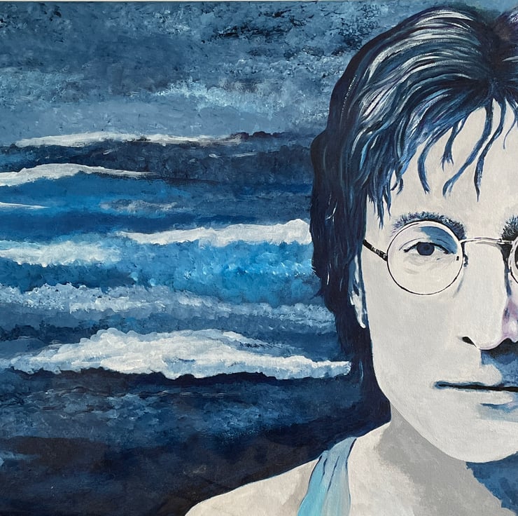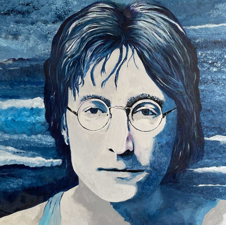 One of a kind acrylic painting on to canvas of John Lennon. Signed by the artist.