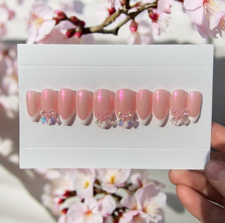 Size used in photo is medium almond, but you can have any length or shape you would like.