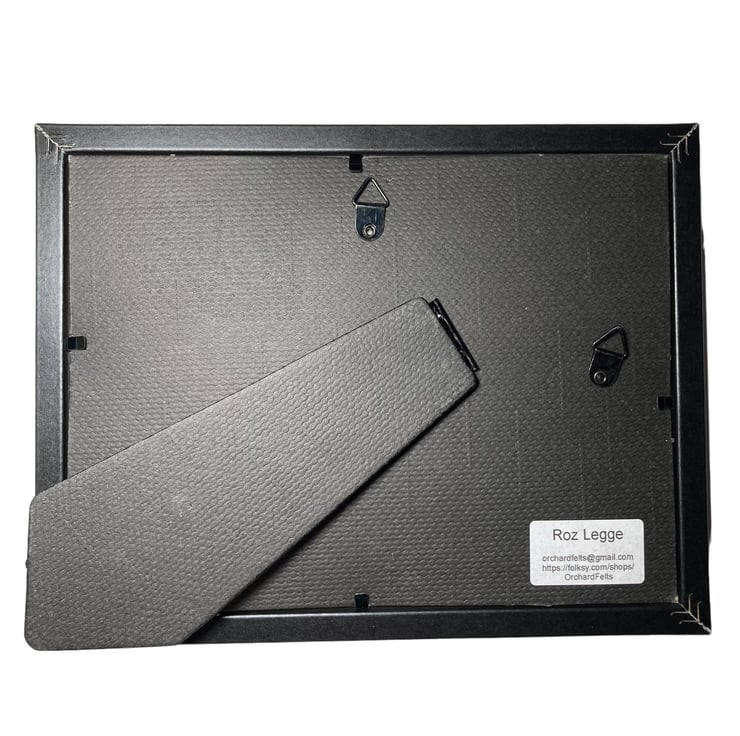 An 8" x 6" double card mount in white and black and a simple black frame have been used to present the artwork. The reverse of the frame has both a hanging loop and a prop stand allowing it to be hung on the wall or stood on a shelf.
