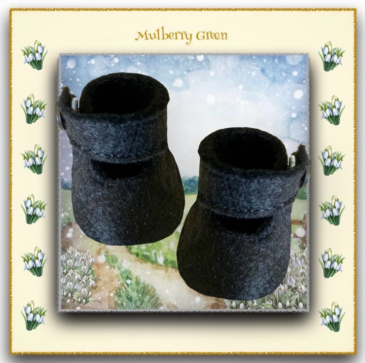A cute little pair of classic black shoes, to fit the Mulberry Green characters. The shoes look lovely with the little dresses.