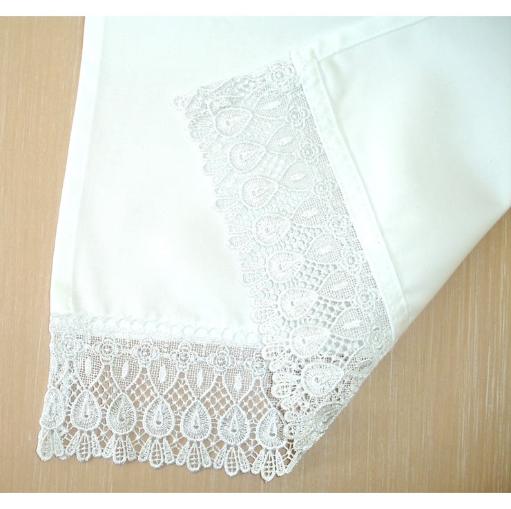 This cloth measures approx 90cm x 35cm (36" x 14") and has an 8cm crochet lace in hourglass & droplets pattern finish to both narrow ends (included in the measurements).