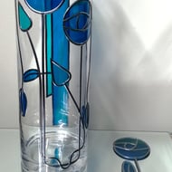 This fun-loving stained glass effect-led design flower vase is eye-catching from any angle. It features a full rainbow of colours and shapes wrapped around shades of vibrant colours. The vase is made of hand-blown rustic glass.
