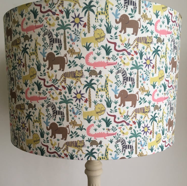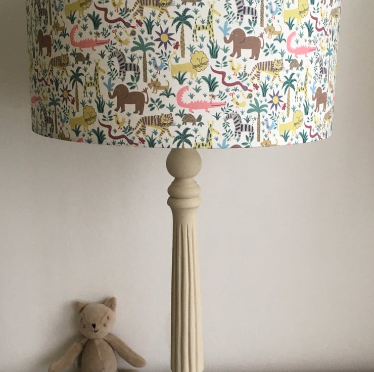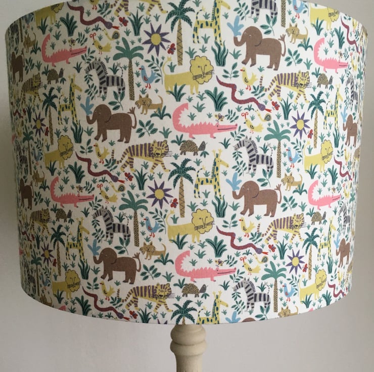 Liberty Louie’s Jungle- Handmade Nursery Table Lampshade. 30cm drum
