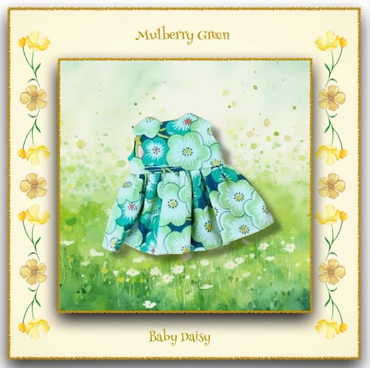 A pretty little dress for baby Daisy in a Spring Flowers print. The dress is handmade from best quality cotton, has a lined bodice and fastens at the back with a little popper