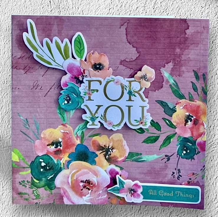 Handcrafted floral card for a special occasion. Suitable for a birthday, to say thank you or just because.