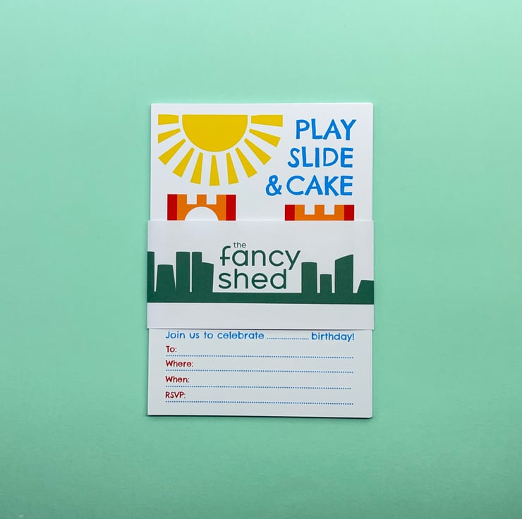 All invitations are designed, printed and packaged in 'the fancy shed' in my garden