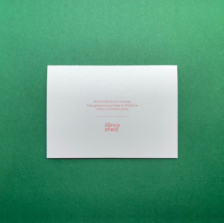 All cards are designed, printed and packaged in 'the fancy shed' in my garden