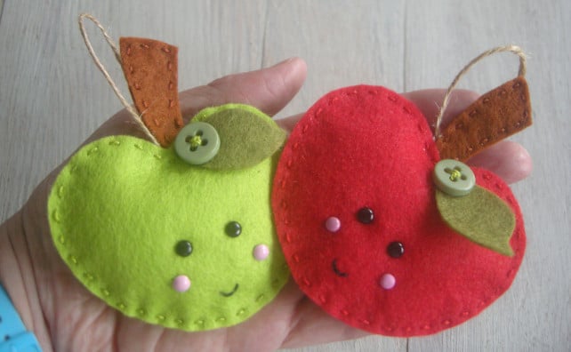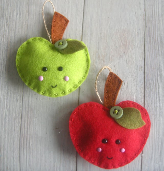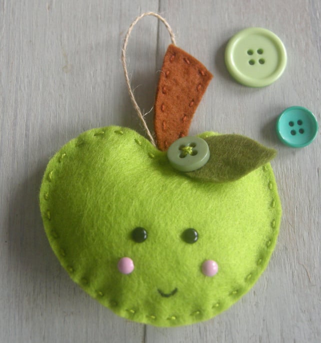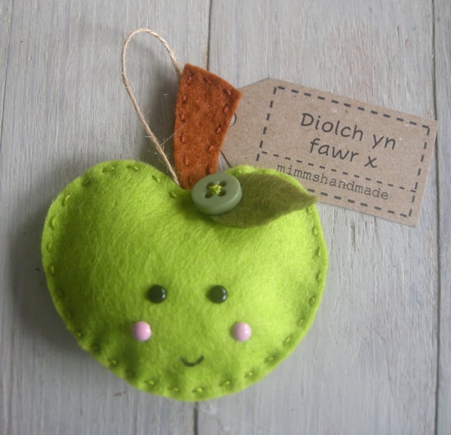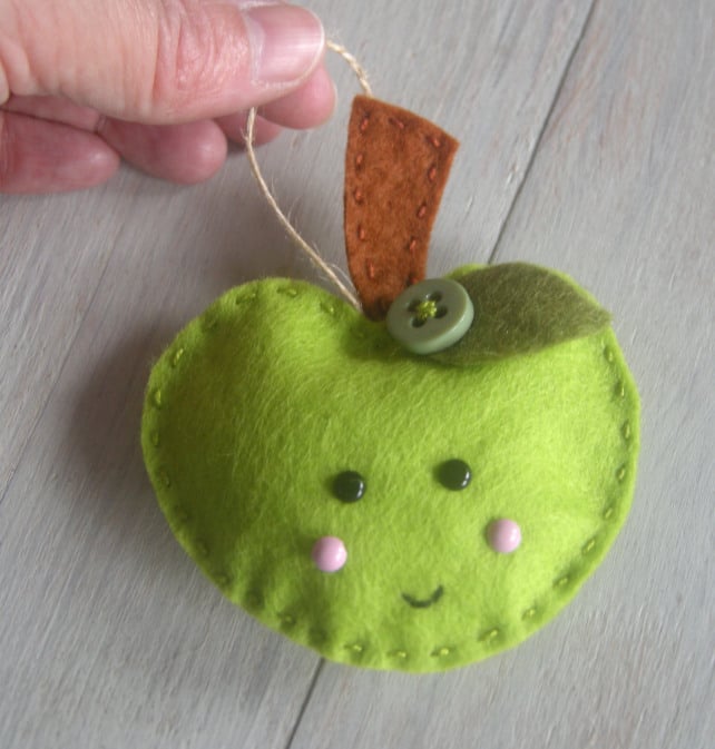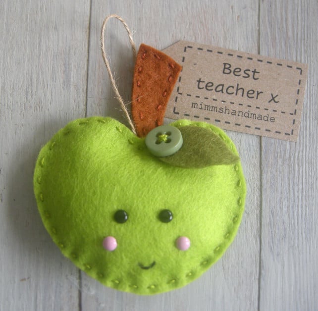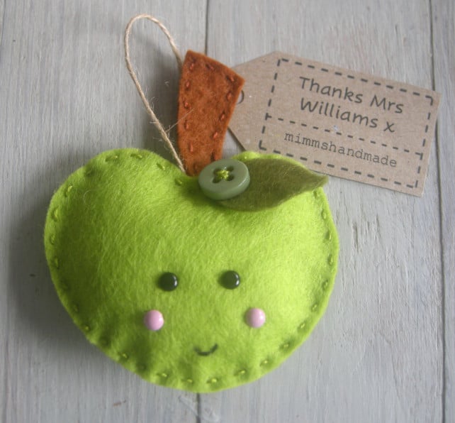 Say thank you to a special teacher with this handmade felt apple decoration. Each decoration is designed, hand cut from good quality felt and then hand stitched and finished off with a vintage button making each decoration unique.
