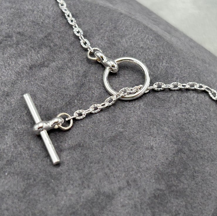 I used a silver plated chain and small circle toggle clasp and bar, making the necklace 17 1/2" in length approximately.