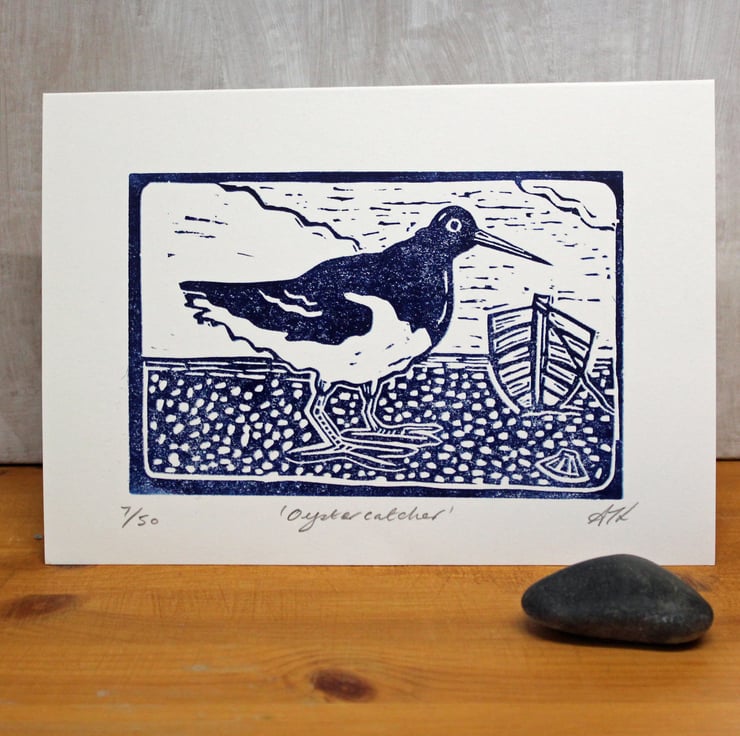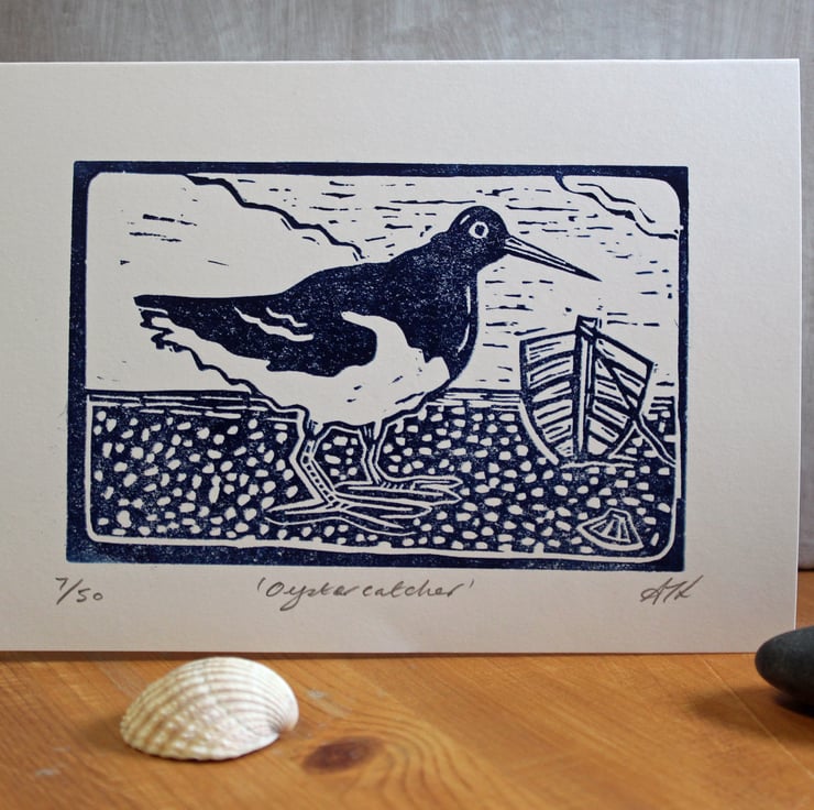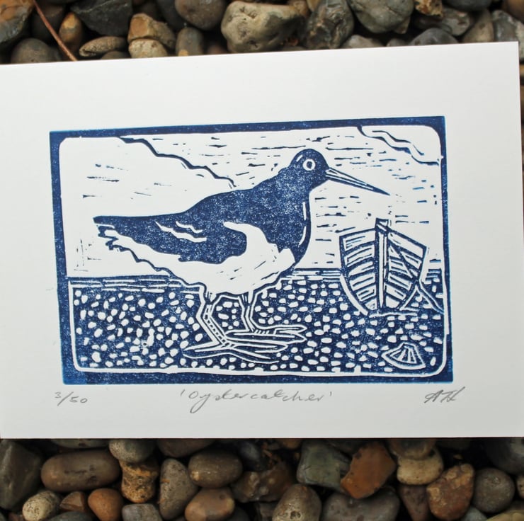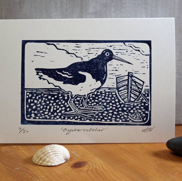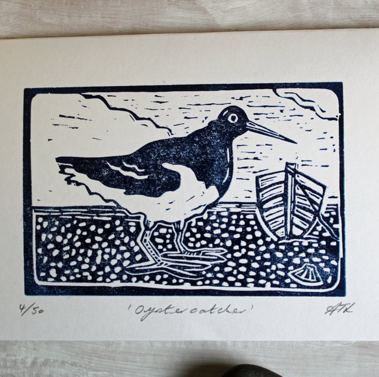 I was working on a two- colour Oystercatcher print when I decided to do this smaller single colour print first.