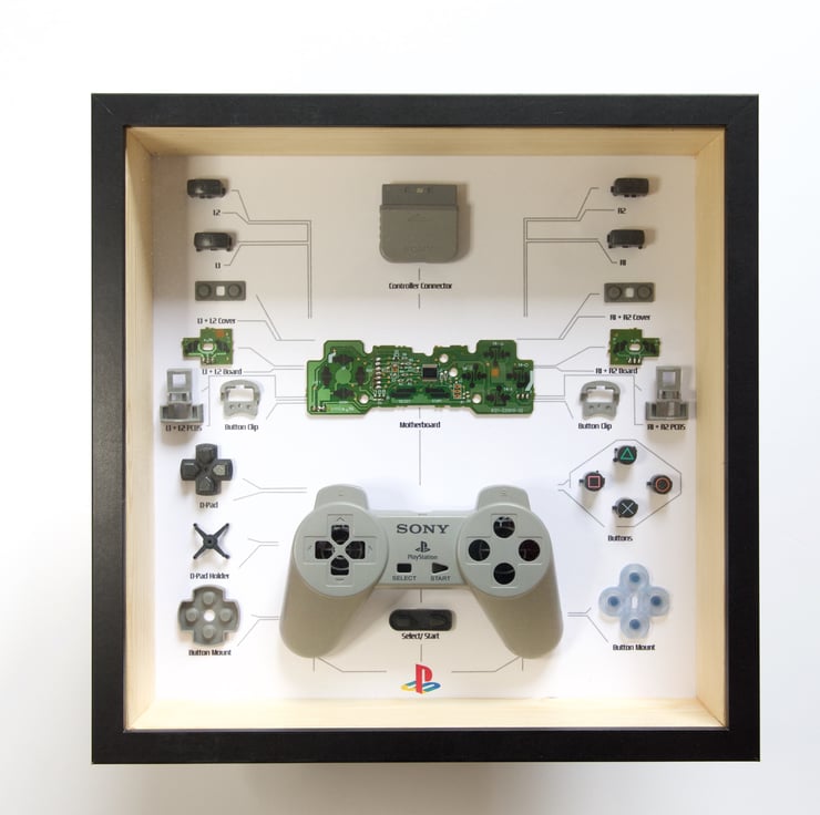 Welcome to Everything3DMade (well almost everything). With the PlayStation One coming out in 1994, this has helped carry on the way gaming is paved. Why not get yourself a bit of history with this broken down wall art frame which would be perfect for any mancave. This comes as a full frame with the controller and parts inside.