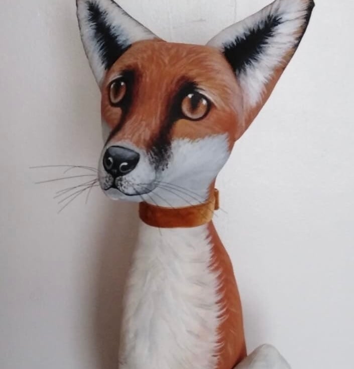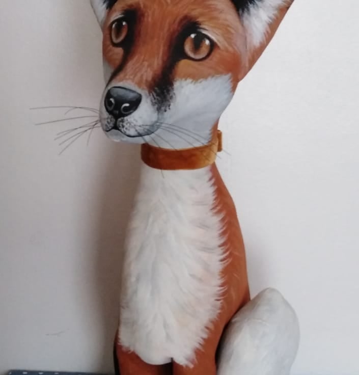 Mr Fox is made from heavy duty cotton calico cut from my own hand draw pattern. He is then filled with soft hypoallergenic fibre stuffing and a lined kiln dried sand bag.