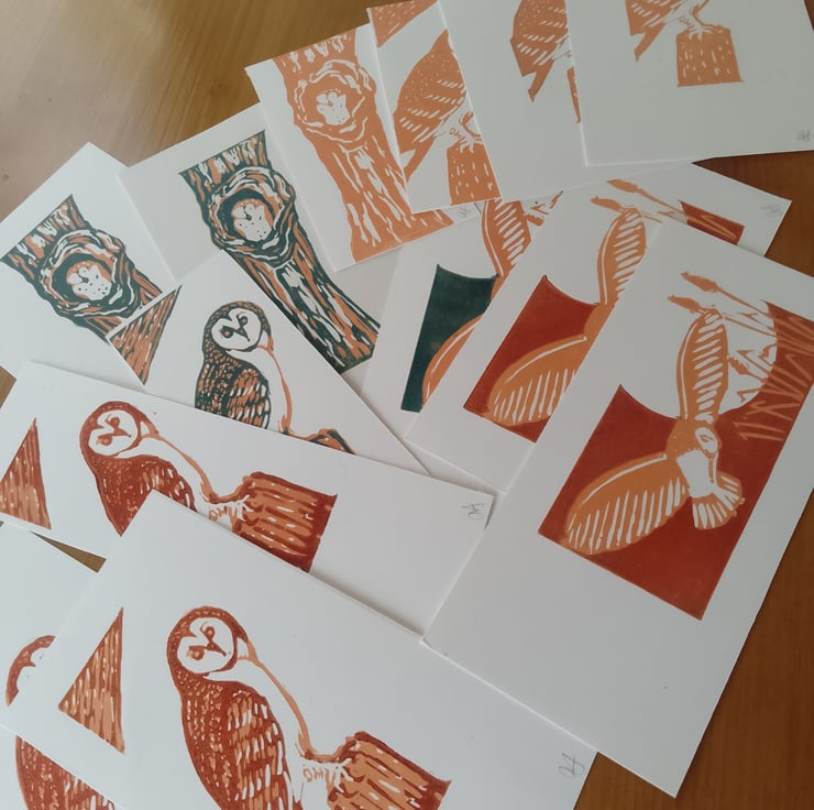 Due to the way folksy works, although I have only listed one of each item. I may have multiples, especially linoprint s. Please message me if you want more than one, I can set up a custom order for you.