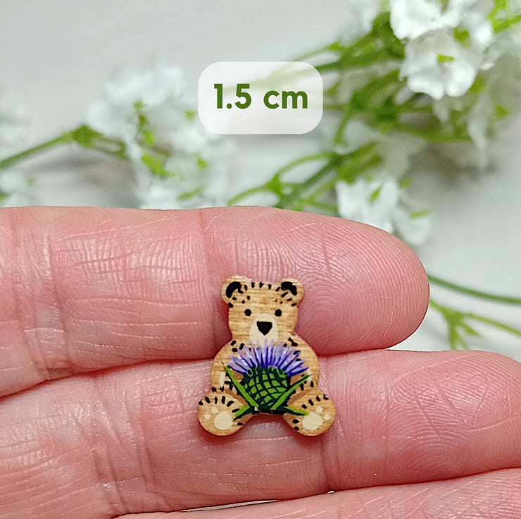 To make your Scottish friends smile ... our hand painted tiny bear holding a Scottish thistle! Delicately painted, small enough to be discrete and oh so cute!