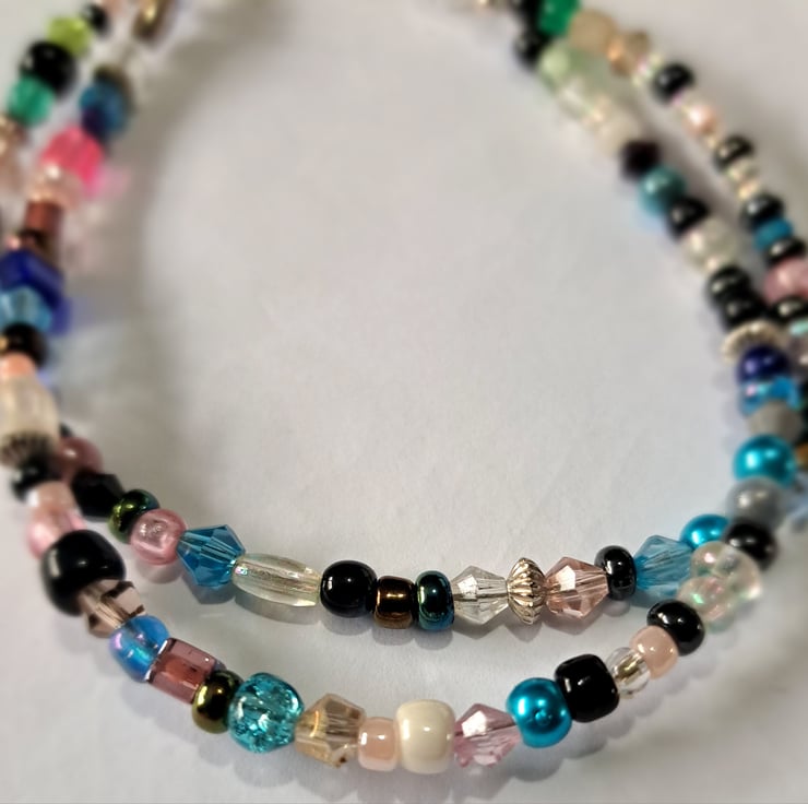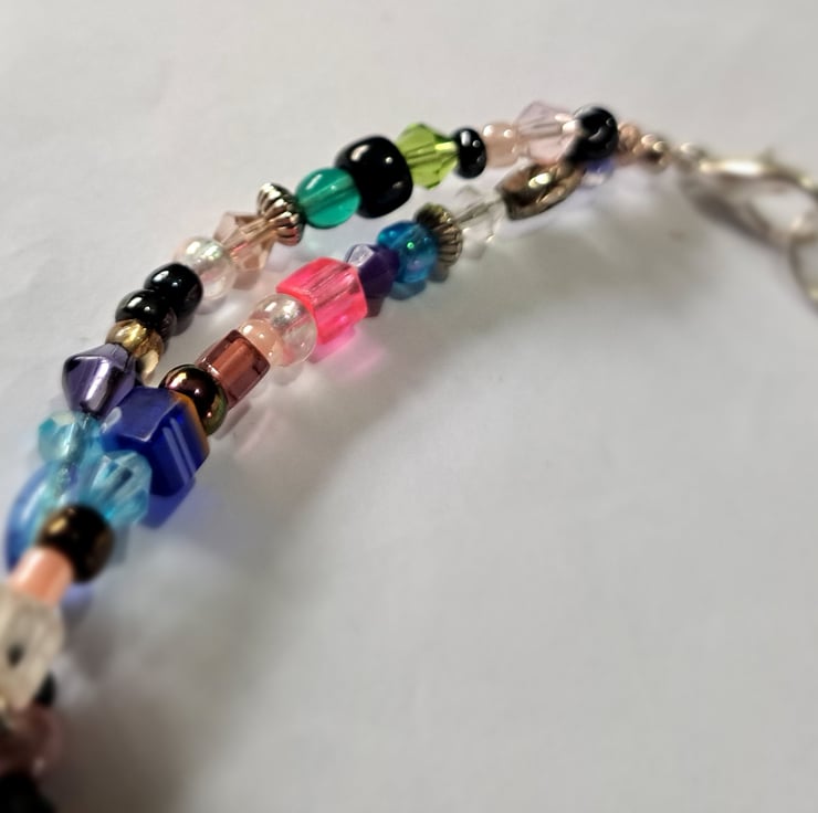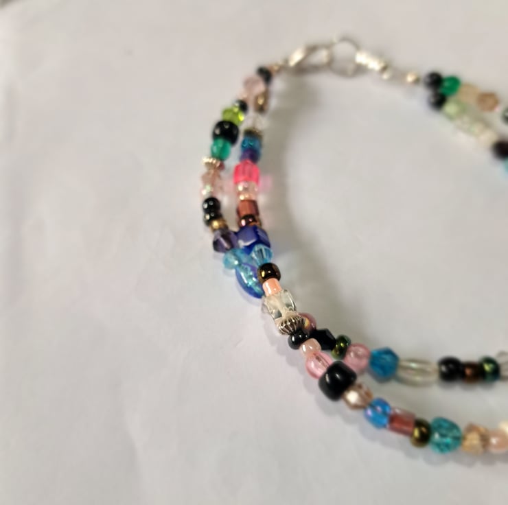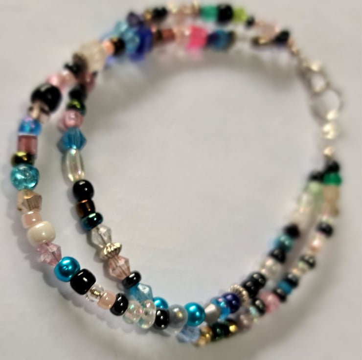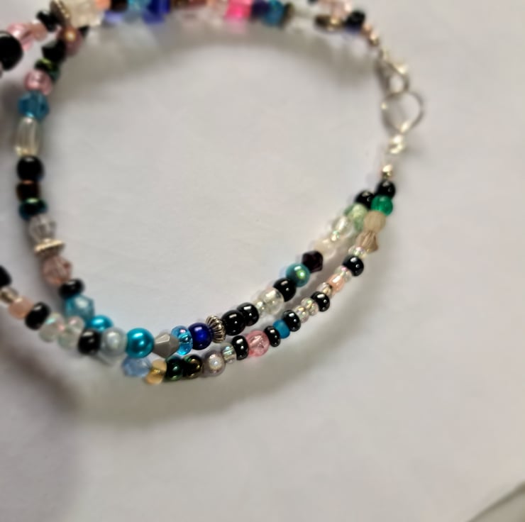 A lovely double wired multicoloured beaded bracelet. Small delicate beads. Closed together by a lobster clasp