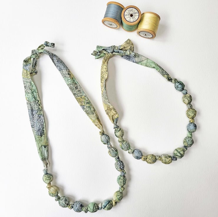 Pastel Coloured Liberty Map Print Fabric Necklace - Cary's Patchwork
