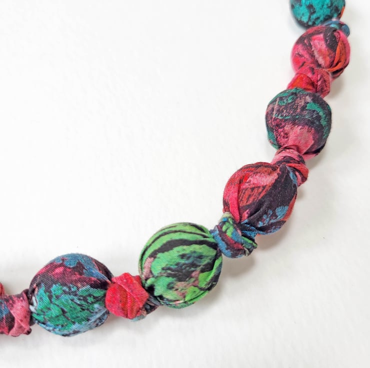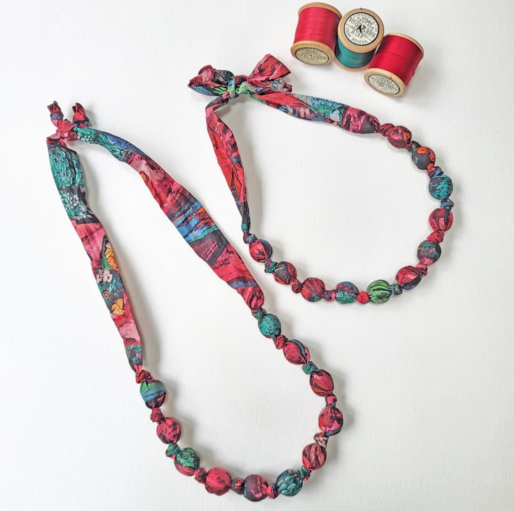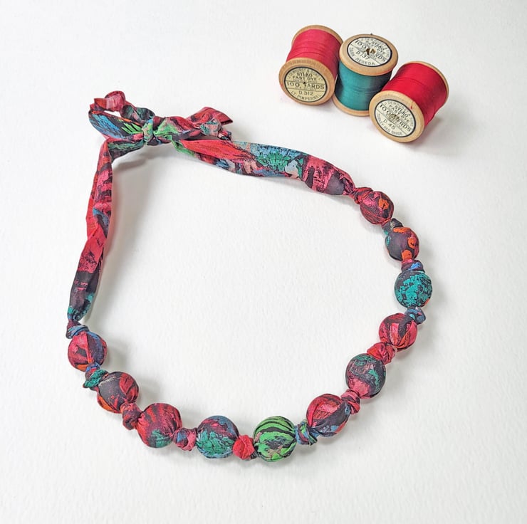 This Liberty print fabric necklace can be tied with a bow or a knot to vary the length from choker to mid chest. It is made out of Tana Lawn 100% cotton and so feels very soft next to your skin and has just the right weight to it to make it hang nicely.