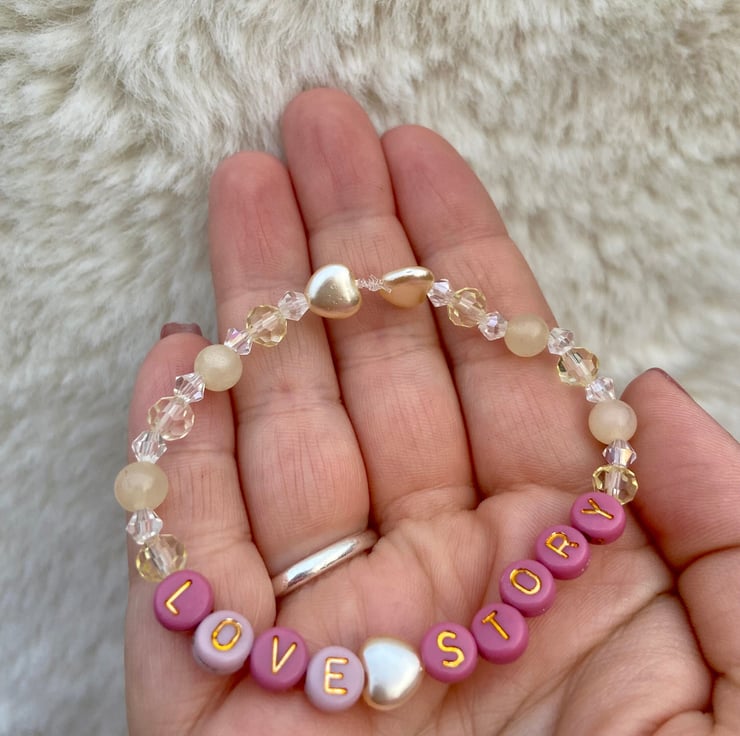 An elasticated beaded bracelet for the love story theme, in the fearless era. This has been handmade by myself, a fellow swiftie and crystal lover. This is perfect for a present for a fellow swiftie or as a treat for yourself.