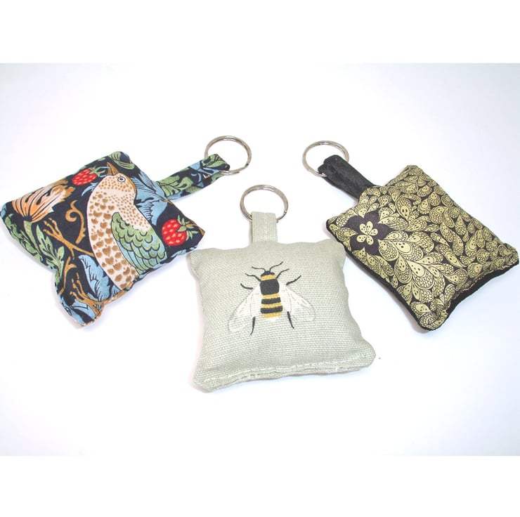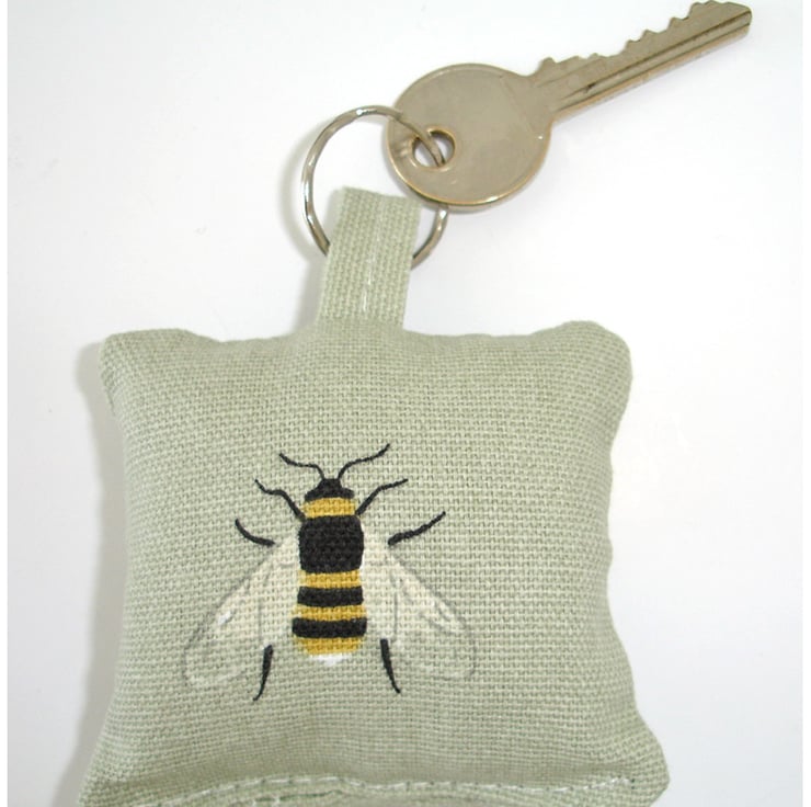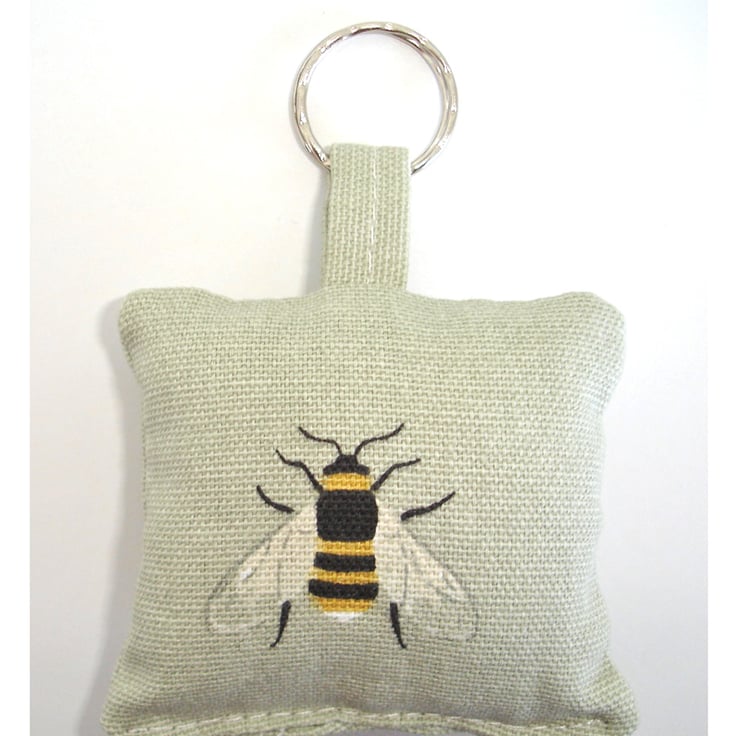 A Keyring pillow created from a Sophie Allport fabric featuring Bees