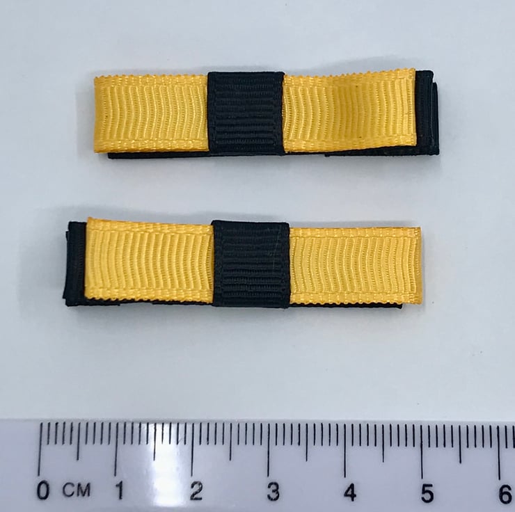 Small Straight Black and Yellow Gold Bow Clips (pair)