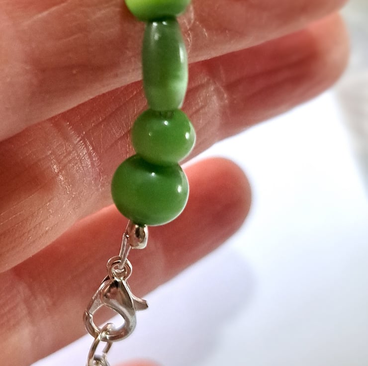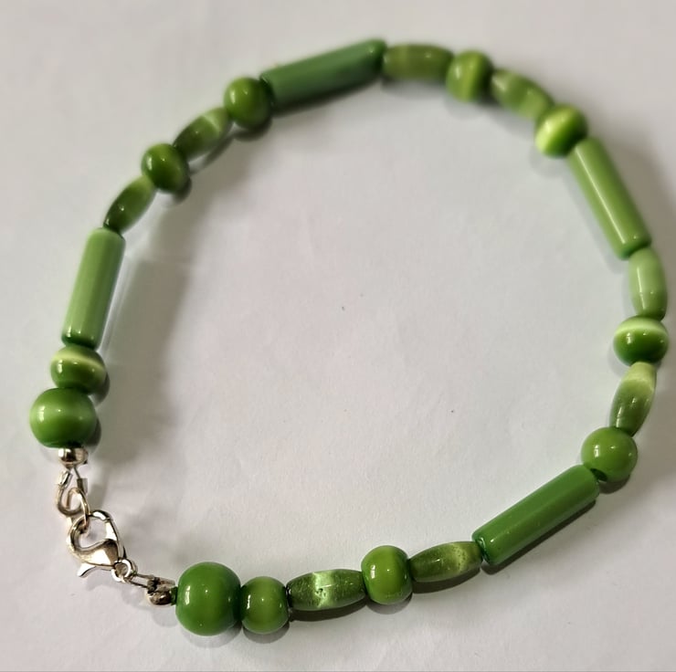A lovely green quartz cat's eye gemstone wired bracelet. Lobster clasp fastening.