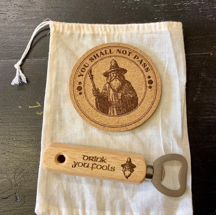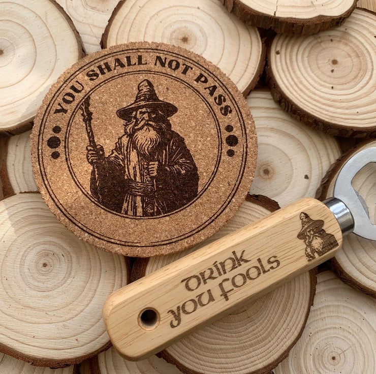 LOTR style cork Coaster/Beer mat & bottle opener set.
