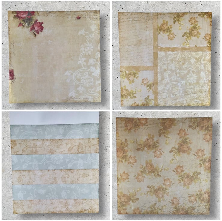 Approximately 25 sheets of 8 x 8 inch thick paper in muted pastel shades for crafting.
