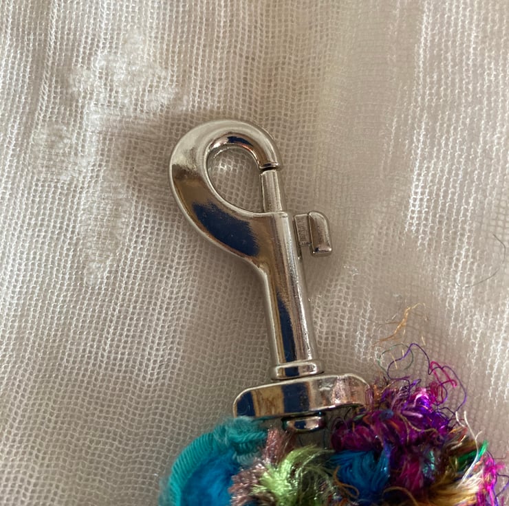 This is an original bag charm using some rich and gorgeous colours. Each one I make is unique and using a variety of different braids and ribbons mainly in strong bold colours. Attached are some glass, wooden and metal beads