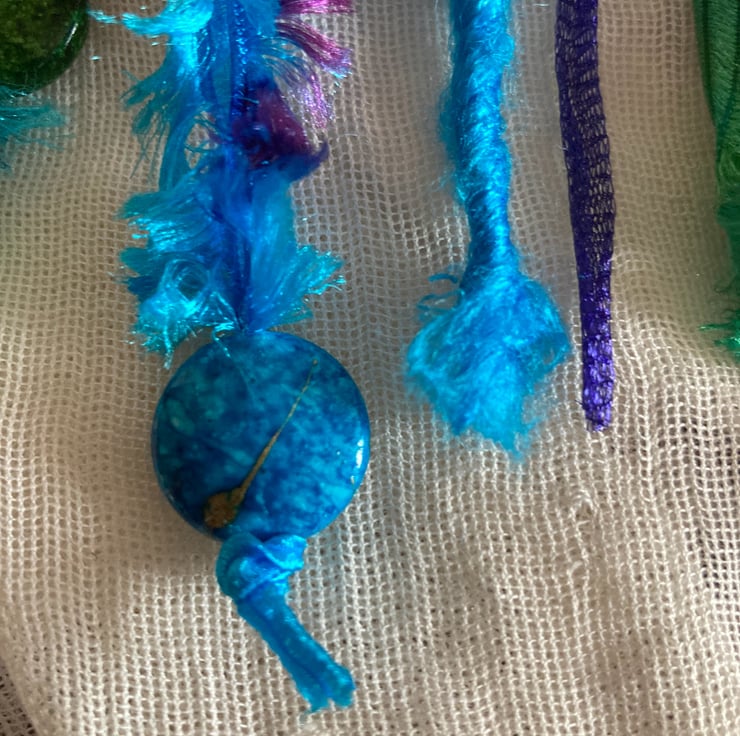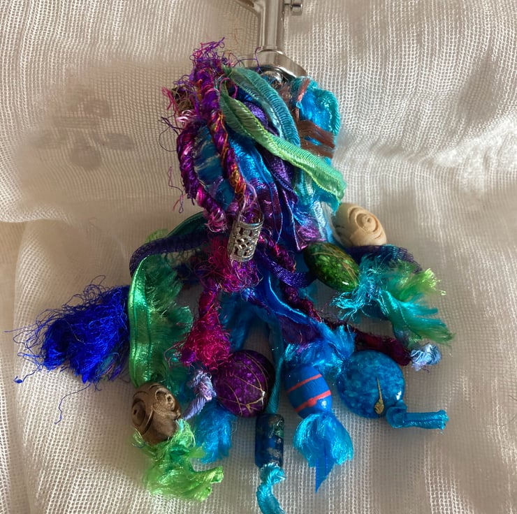 This is an original bag charm using some rich and gorgeous colours. Each one I make is unique and using a variety of different braids and ribbons mainly in strong bold colours. Attached are some glass, wooden and metal beads