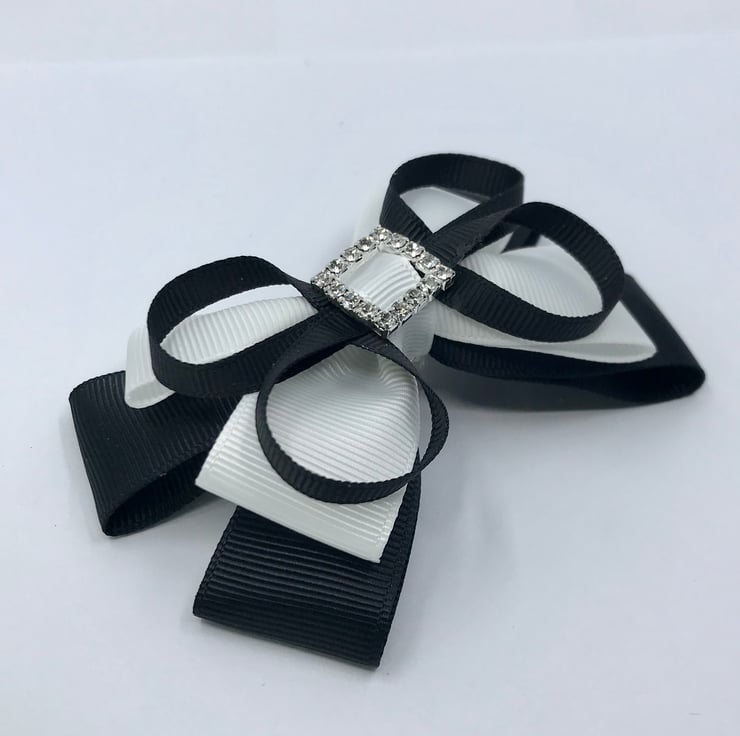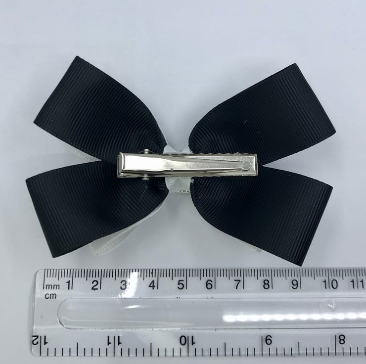 Our double bows are handmade here in our little shop. They are made from the best quality Grosgrain ribbon. These bows are really elegant and look extremely smart and go well with the Black and White Uniform.