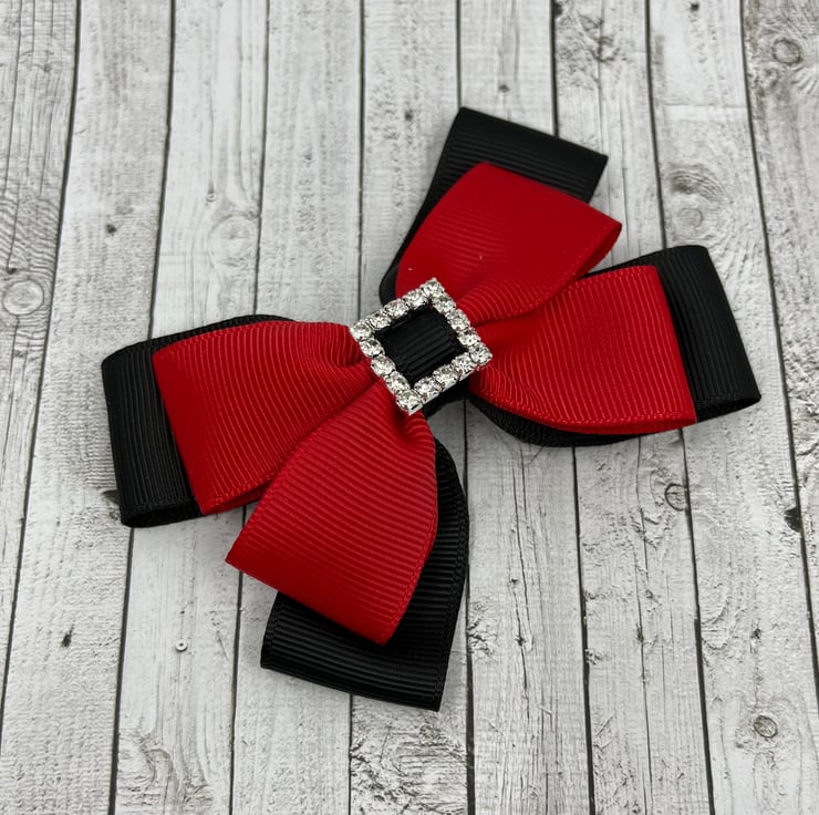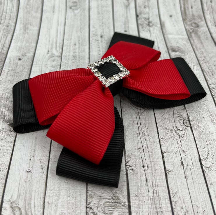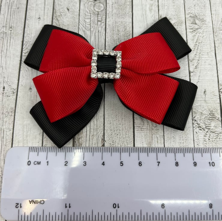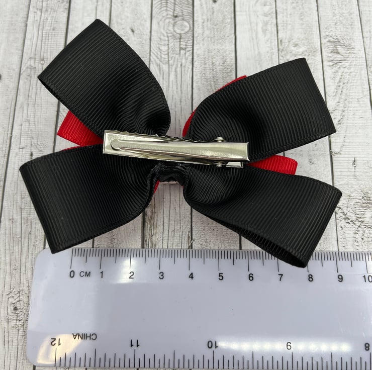 Our double bows are handmade here in our little shop. They are made from the best quality Grosgrain ribbon. These bows are really elegant and look extremely smart and go well with the Black and Red Uniform.