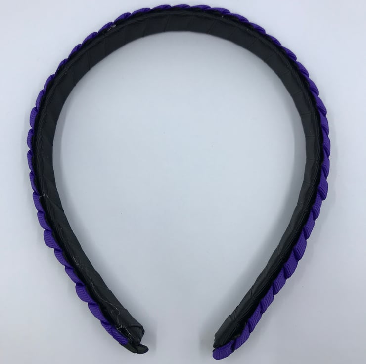 Our pleated hairbands are handmade here in our little shop. They are so cute the could compliment any school Uniform with Black and Purple in it. They are ideal for keeping those sneaky little curls from straying into your little one's eyes.