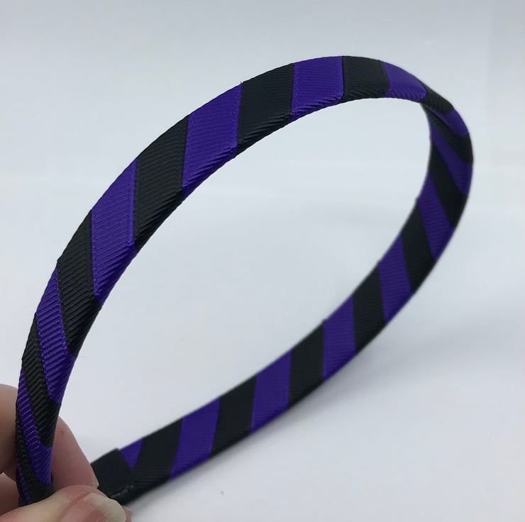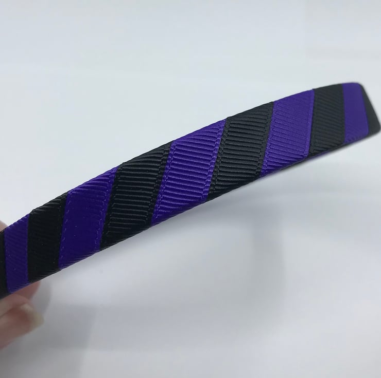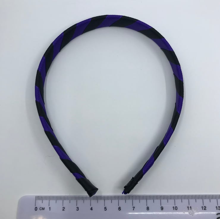Our Black and Purple Ribbon 1.8cm striped head band is made with excellent quality grosgrain ribbon. It will match beautifully with your little one's school Uniform and keep those little stray curls out of your little one's eyes.
