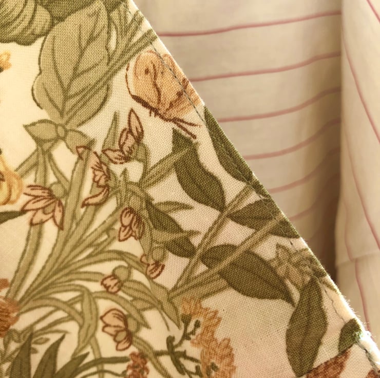 Repurposed fabrics - Floral outer and lining: 100% cotton.