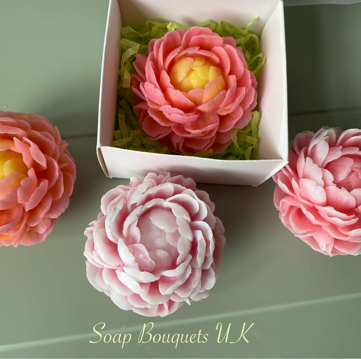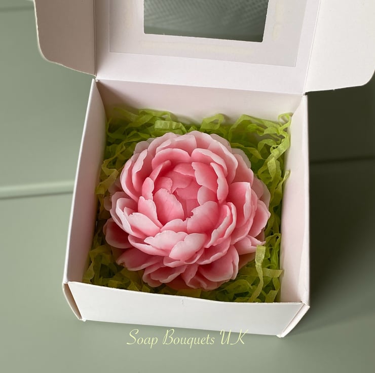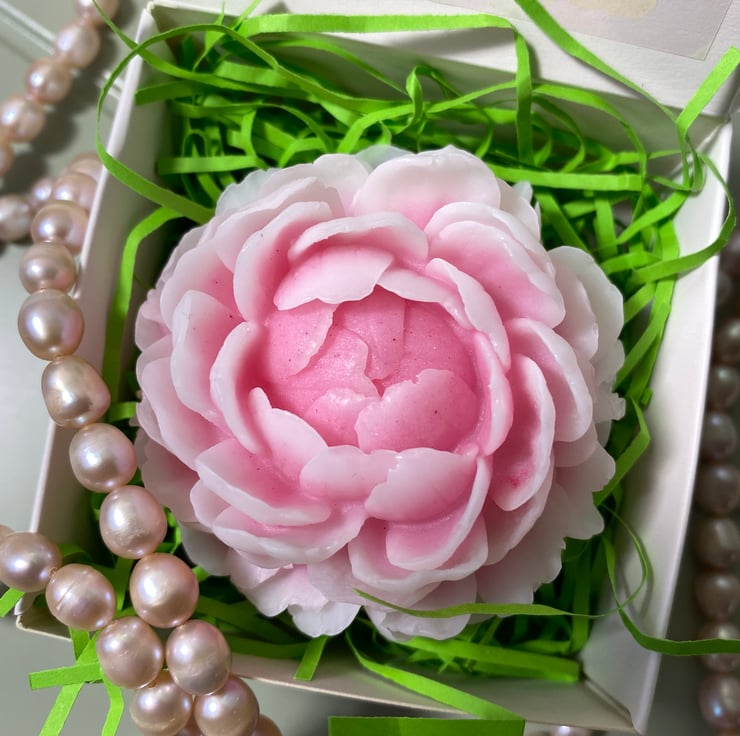 Discover our exquisite vegan soap, meticulously shaped into a peony flower and available in various shades of pink. Custom colors are also available upon request. This luxurious soap is delicately scented and elegantly packaged, making it a perfect and distinctive gift for occasions such as birthdays, Christmas, Mother's Day, Valentine's Day, and more.