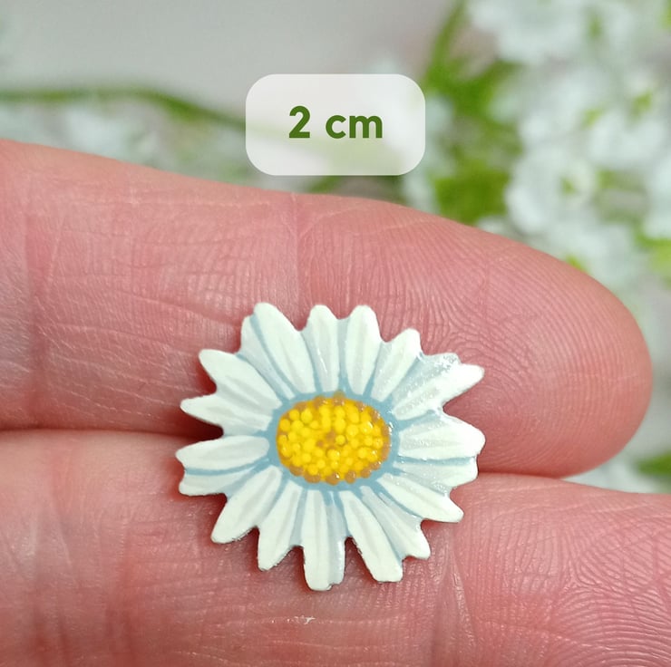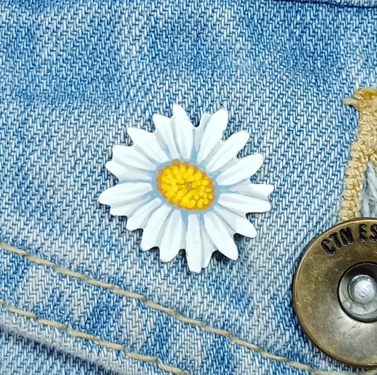Decorate a sun hat or a summery top with a little bit of summer! This hand painted daisy pin is beautifully detailed yet not much larger than a real daisy!