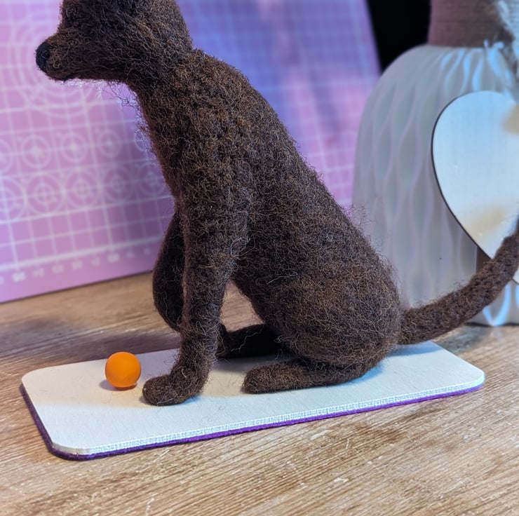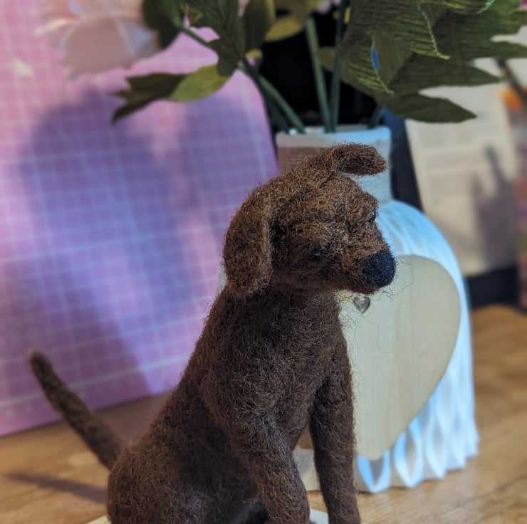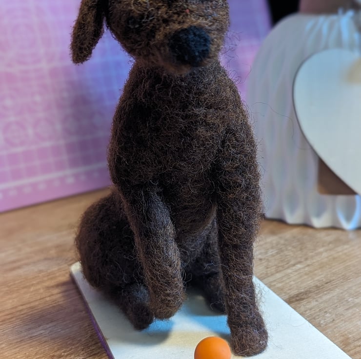 This cute brown Labrador would make the perfect little gift for a dog lover. He has been needle felted by hand using natural fibre wool and is captured here patiently sitting with his paw held up, waiting for his owner to throw his ball!