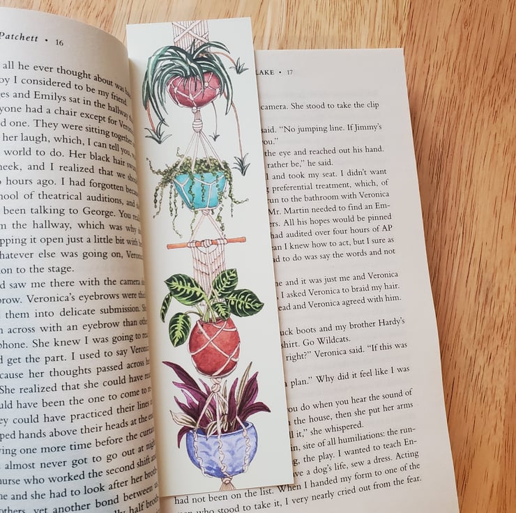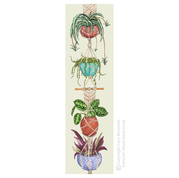 Illustrated bookmark featuring my Macramé Houseplants design.