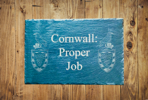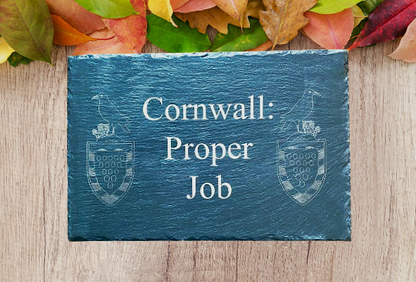 This delightful slate placemat or platter is a celebration of Cornwall - Kernow - and being Cornish or simply a lover of Cornwall and all things Cornish and it is a piece that remembers and recognises that most wonderful of Cornish phrases: "Proper Job" which is the Cornish way of saying something is really good.
