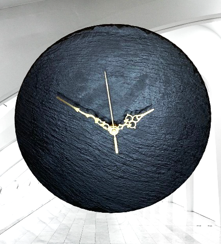 The clock face itself is designed with slender black, gold or silver hands, as illustrated in the accompanying pictures, with a second hand that can either sweep smoothly and silently across the surface, or tick each second off individually, with an audible ticking sound, as shown in the video which also highlights the fact that our clocks are made from repurposed slate platters but are also available in a robust, varnished 6mm thick plywood finish